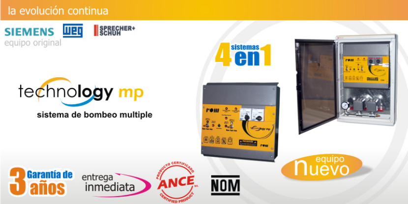 Tableros de control Technology MP sbm este tablero de control cuenta con protección por sobrecarga, corto circuito y protección por bajo nivel y nuevas funciones, sus características son: Opera los cuatro sistemas de bombeo, de acuerdo a una sencilla configuración. Sin realizar ningún tipo de cambio adicional, las configuraciones se realizan en pocos segundos.